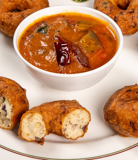 Prepared by soaking and grinding urad dal into a thick batter, the vada is seasoned with black pepper, curry leaves, chopped green chilies, ginger, and onions. Shaped into a doughnut form by hand and deep-fried until golden, Uzhunnu Vada is typically served hot with coconut chutney and sambar.